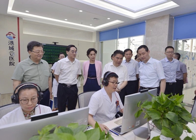 市委书记项雪龙一行还实地考察了互联网医院的建设情况,详细了解了线上线下运营管理模式,观看了云诊室医生视频诊疗,对市二院和康缘集团开拓创新、把握时代需求服务民生、切实推动云医院的发展和建设给予充分肯定并提出宝贵指导意见。