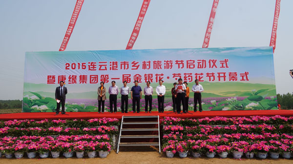 本届乡村旅游节由连云港市旅游局、东海县旅游局、江苏康缘集团共同主办。仪式上,连云港市旅游局局长王芬、东海县委副书记宋波分别为活动致辞。近年来,我市以新农村建设和现代农业发展为依托,坚持以旅促农、以旅助农、以旅富农,打造农业生态旅游品牌,加快建设沿海风情、都市农业、环湖水乡、丘陵山区的乡村旅游格局。先后成功创建省景观旅游名镇1家、省特色景观旅游名镇乡1家、市级农(渔)家乐36家、市特色旅游乡镇(村)10家。王芬强调,康缘集团作为我市骨干企业,充分发挥了企业的资源优势,积极向旅游产业拓展,开创了全市龙头企业发展工业旅游、农业旅游的先河。相信在康缘集团等社会各界的努力下,我市乡村旅游一定能显特色、上水平、出效益,让旅游惠及民生、惠及百姓。 在我市大力发展乡村旅游业,培育壮大一批现代农业大镇和乡村旅游名镇之际,康缘集团举办此次“金银花•芍药花”节可谓恰逢其时。康缘集团党委副书记江希明在讲话中指出,作为我市一家大型本土企业,长期以来,康缘集团在市委市政府的正确领导下,以弘扬民族医药事业为己任,依托国家博士后科研工作站、国家重点实验室等一系列国家级研究平台,形成了以突出的自主研发能力、坚实的技术积累、创新的产品规划和策略、严格的质量控制体系为突破口的企业创新发展格局。为积极响应国家构建“以工促农、以城带乡、工农互惠、城乡一体的新型城乡关系”的战略部署,康缘集团大力发展高效生态农业,凸显经济、生态双重效益,着力打造集旅游观光、休闲度假、生活体验、以及中药材种植为一体的特色农业产业园。这为改善当地农业产业结构、促进农民就业、带动农民致富发挥了积极作用。