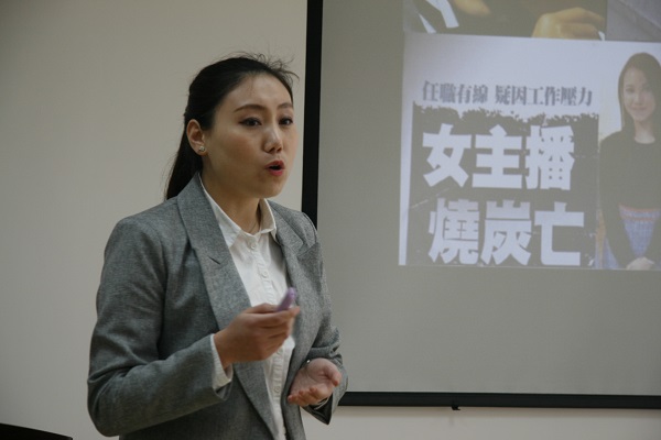 来自医药商业的销售代表朱怡璇,沉着大方、妙语连珠,巧借《心经》修身故事,引申出“如何正确对待压力”话题。在试讲过程中,她与现场观众积极互动,用两个小游戏紧紧抓住大家的注意力。通过自创画“雨中的你”,解读目前自己承受压力的状态;运用“系绳扣”游戏,告诉大家在遇到困境时应采取思维转换的解决方式,最终揭示“云层之上全是阳光”的理念,赢得在场人员好评。