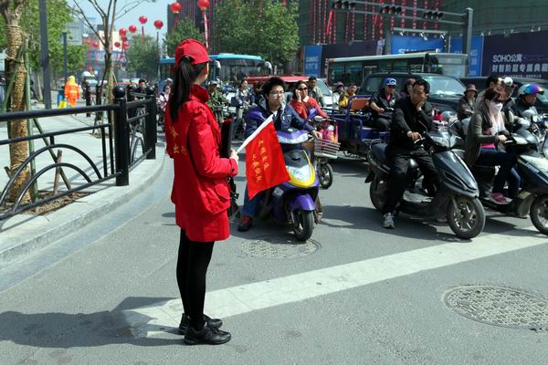 志愿者们不仅向市民宣传文明交通法规常识,还对行人、非机动车随意横穿马路、闯红灯等不文明行为进行劝阻。红灯亮起,志愿者手挥小红旗,提醒市民将车停在斑马线以内,并对行人讲解路口的停车规则,力争通过志愿服务活动营造文明和谐的交通环境。在交巡警、志愿者们的多方“把守”下,市民闯红灯现象明显比以往有所减少,维持了十字路口井然有序、安全畅通。“行人过马路要走斑马线,红灯停、绿灯行……这些最基本的、关乎每个人生命安全的交通法规,在现实生活中很容易被一些人抛诸脑后,导致‘中国式过马路’现象屡见不鲜。一定不能图个人一时之快,而影响了正常交通秩序,特别是安全问题,如果放弃那短短几秒钟的等待时间而损伤了自己的生命真是太不值了。”现场一名王姓志愿者不无担忧的说道。