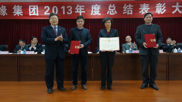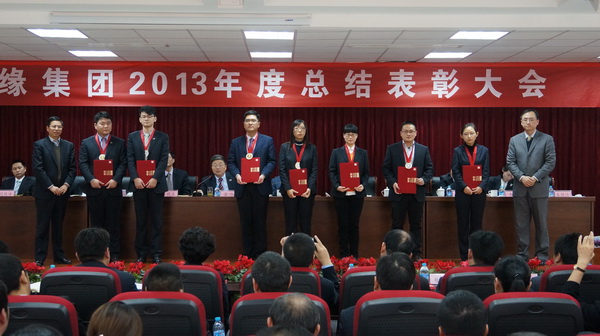 伴随着《康缘之歌》,集团公司对2013年度涌现出的一批业绩优秀的先进集体和个人进行表彰,集团副总经理夏月宣读表彰决定。引领集团快速发展的两大板块核心企业,康缘药业和康缘商业分别摘得“最佳贡献奖”、“最佳经营效果奖”桂冠,各获奖金80万元、60万元;为公司未来国际化发展战略作出贡献的集团外贸赢得“最佳经营改善奖”,获奖金20万元;会议授予刘五生、张载勤“优秀经营者”荣誉称号;授予张帅、罗丹等6名同志“杰出干部”称号;沈卫华、等12名同志获“首席员工”奖。会议还对集团本部的先进员工进行表彰:陈玥、王钢、陈晓丹等13名同志,分别被授予“优秀干部”、“首席员工”和“最佳新人”荣誉称号,受表彰人员均获金牌和银牌奖励。会场再次爆发春雷般的掌声,经久不息,这是对获奖代表的价值肯定,也是对全体员工的鞭策和激励。