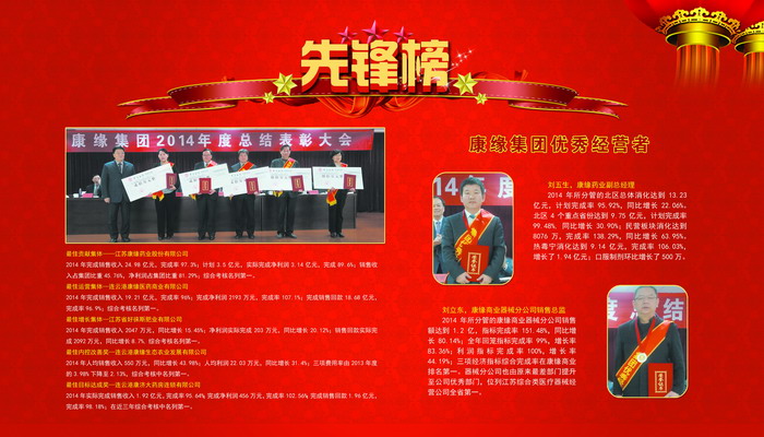 康缘集团先锋榜 返回列表 2015-02-26 分享 为了弘扬先进、树立典型,在集团公司2014年终总结大会上,隆重表彰了2014年度集团优秀团队和个人,包括“智多星荣誉奖”、“最佳贡献集体奖”、“最佳运营集体奖”、“最佳增长集体奖”、“最佳内控改善奖”、“最佳目标达成奖”、“优秀经营者”、“先进部门”、“杰出干部”、“首席员工代表”、“年度最佳新人”11大奖项,奖金最高达80万元。 返回列表 <ul id="pnnews"> <li class="_prev"><span class="_mark"><i class="ion"></i>上一条</span><a href="javascript:;" class="_title el">数据加载中! </a></li> <li class="_next"><span class="_mark"><i class="ion"></i>下一条</span><a href="javascript:;" class="_title el">数据加载中! </a></li> </ul>