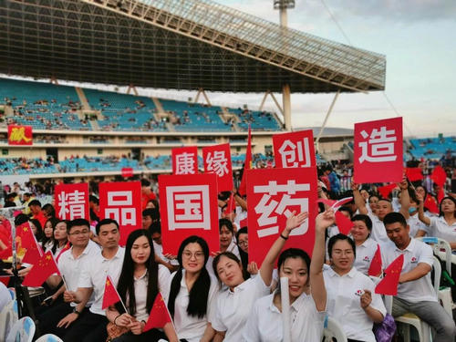 重温红色经典,是对新中国成立70周年取得的重大成就的致敬,连云港之夏群星演唱会特意安排了红歌串烧、现场拉歌等环节。由康缘药业职工代表统一着装组成的方阵,在全场聚光灯的聚焦下,尽情演唱《大中国》:我们都有一个家,名字叫中国……豪情万丈、雄浑激昂,观众的情怀也早已被康缘的热情点燃,用力挥舞着手中的荧光棒,现场气氛进入高潮,观众纷纷表示这是最燃的方阵。