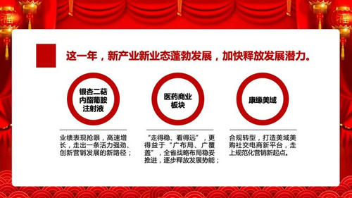 2019年,是医药行业发展极不平静的一年。“三医联动”综合改革不断深入,行业发展局势、发展预期发生了重大变化。在风云激荡的经济形势和市场环境下,集团公司极限承压,攻坚克难,立足“百亿康缘”新起点,逐梦康缘“五年三百亿”新征程,核心医药板块护盘稳盘,核心品种培育扎实推进,积极打造新业态,开创新模式,孕育新动力,较好达成年初制定的主要目标任务。