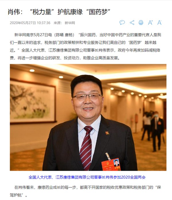 两会期间,通过现场、视频、电话等多种方式,肖伟代表接受了《中央电视台》《新华社》《中国新闻社》《科技日报》《中国证券报》《江苏新时空》等多家媒体采访,围绕中医药如何更好参与重大公共卫生事件防控、中医药如何“出海”发展、如何坚定中医药自信,推进高质量发展、税收政策为传统中药产业注入新活力等多个方面提出建议,形成报道60余篇,受到人民网、新华网、中新网、江苏经济报、工人日报、扬子晚报、交汇点新闻等媒体的广泛关注。