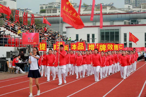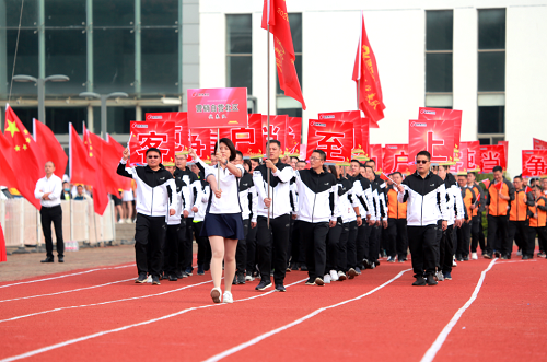 此次康缘集团全民健身运动会开幕式由康缘集团党委副书记殷世华主持。随着音乐响起,集团及各权属公司组成的12支代表队迈着整齐的步伐,喊着嘹亮的口号迎国旗而来,充分展示了康缘人积极进取、创新争先的精神风貌。
