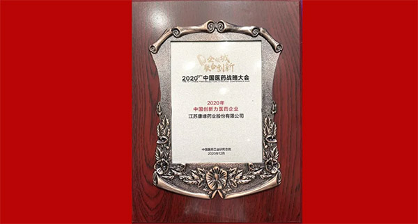12月19日-21日,由中国医药工业信息中心和农工党中央青年工作委员会联合主办的2020年(第13届)中国医药战略大会在石家庄召开。会议期间,“2020年中国创新力医药企业”榜单重磅发布,江苏康缘药业股份有限公司荣耀入选,位列第五。