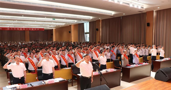 百年传承,薪火相继。会上,肖伟书记为董运爵等3名老党员代表颁授“光荣在党50年”纪念章,“光荣在党50年”是经中共中央批准颁发的,是荣誉,是嘉奖,更是传承,记载着他们的初心与本色。随后,在肖伟书记领誓下,新吸收的72名新党员和全体党员进行了入党宣誓和重温入党誓词,字字千钧、掷地有声,将党的精神进行传承和发扬。
