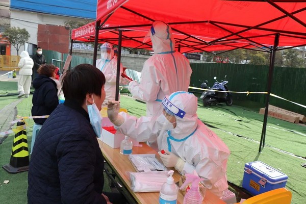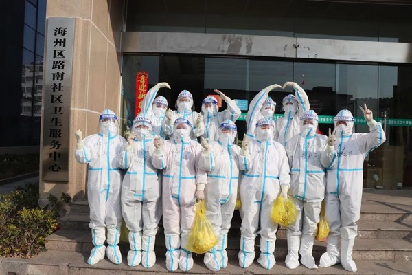海州区路南社区卫生服务中心在海州区卫健委领导下,立足岗位、毫不松懈,快速组织医护人员投入到群众人数多、风险等级高的居民区进行核酸采集工作,截止到3月9日,共采集核酸样品约20万份。疫情发生以来,核酸采集人员们两两一组,分工明确,白色防护服彰显着他们无畏的精神,他们没有任何怨言,一往无前地继续奔赴各个采样点。社区中心的工作人员自疫情爆发以来一直在连轴工作,每天工作到凌晨三四点,尽全力为核酸检测做好物料准备工作。