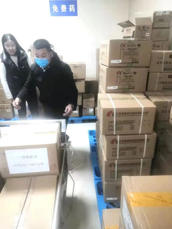 康缘商业董事长凌娅主动与政府、相关医疗机构对接,了解疫情防控物资需求,带领班子成员及时研究制定抗疫物资紧急储备和供应方案,协调上游生产厂家,争取更多货源,克服人员缺少等困难,发挥国家应急储备调拨中心和主渠道优势。一线工作人员吃住在医院,仓储物流中心24小时运营,全力保障疫情防控药品物资的供应。当了解到医护人员缺少洗漱用品时,康缘商业立即组织人员前往超市购置洗漱用品,捐赠一线抗疫医护人员,给一线人员送去关爱,让他们以更好的精神面貌投入到抗疫中。