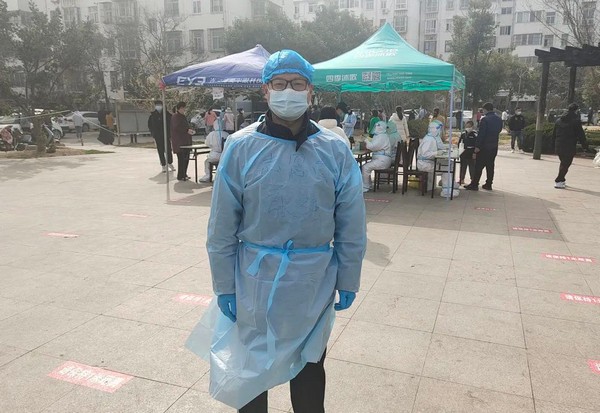 路南社区医院院长魏峰3月4日凌晨3点多接到卫健委电话,要求他立足岗位、毫不松懈,快速组织医护人员投入到群众人数多、风险等级高的居民区进行核酸采集工作。接到通知后,魏峰带领队伍上门为老年人,密接、次密接人员检测,每日检测1万余人,队伍中15名女同志,为了减少换防护服,她们一天都不喝一口水,轮班采样、录入、检测,冒被感染的风险采集密接次密接红黄码等隔离点人员,每日工作时间从凌晨两点工作到夜里12点,吃住在医院、宾馆。