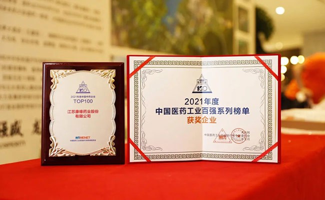 康缘药业位列“2021年度中国中药企业TOP100排行榜”第12位