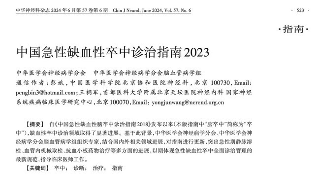 银杏二萜内酯葡胺入选中华医学会《中国急性缺血性卒中诊治指南2023》
