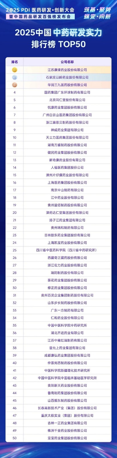 康缘药业再登顶!蝉联《2025中国中药研发实力排行榜》榜首